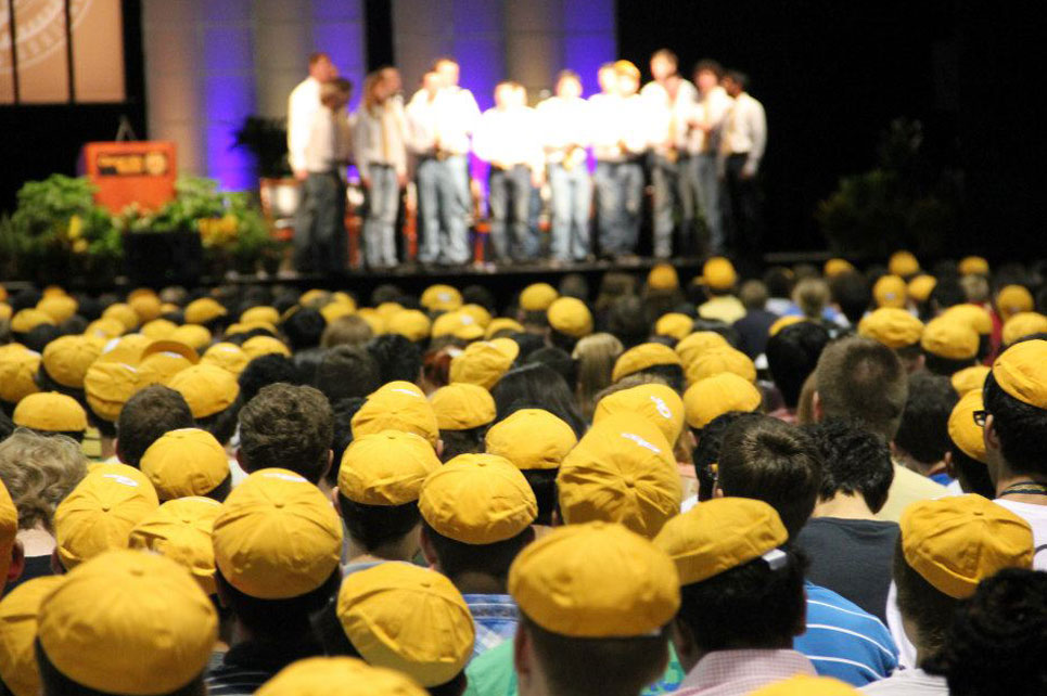 RAT caps were first found on Georgia Tech’s campus in 1915. They were originally called “freshmen caps” because of the white F on the front of the cap standing for “Freshmen” rather than the “GT” we see today. All freshmen were required to wear the caps every day until the end of spring quarter unless Tech beat UGA in the fall quarter’s freshman football game. Freshmen caught without their RAT cap were subjected to punishment including what is known as the “T-cut”, which entailed a student’s hair being shaved into the shape of a “T”. RAT rules were enforced by Ramblin’ Reck Club and other upperclassmen. Anti-hazing policies led to the end of RAT rules. Today, out of respect for the tradition, freshmen receive a RAT cap at Convocation.