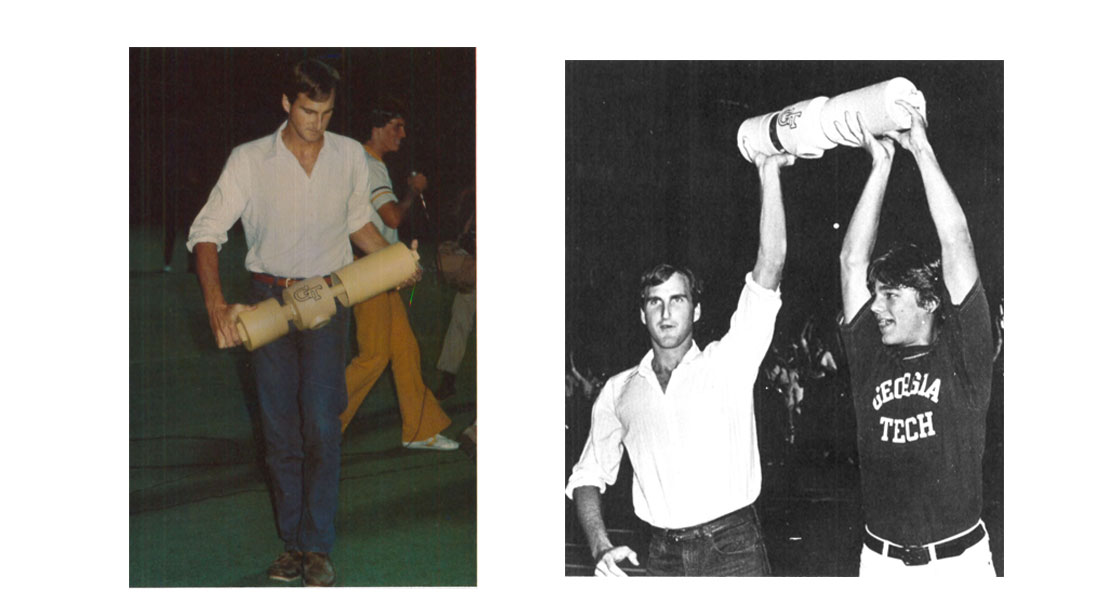 Dating back to Tech’s early days as a trade school, the whistle regulates day-to-day life on campus, blowing at five minutes ‘til the hour from 8 a.m. to 6 p.m. every weekday. It has been the target of many pranksters and is probably the second most desirable prize on campus behind the Tech Tower ‘T’. The whistle is the oldest recorded tradition at Georgia Tech. The first steam whistle was installed in the rebuilt Shop Building in the fall of 1892, only to be stolen for the first time in 1905. Most recently, the whistle was taken in 1995 in historical fashion. On May 12th, 1995, G. Wayne Clough was inaugurated as Georgia Tech’s 10th president. To mark such a historic occasion, administration had planned a procession consisting of hundreds of students, faculty, and alumni from the Georgia Tech campus to the Fox Theatre. The procession was led by Clough and his wife, Anne, riding in the rumble seat of the Ramblin’ Reck. As the procession went forth, the whistle was to blow ten times to signify Clough as the 10th president. However, Kevin Morgan (EE '95) and Duane Horton (BC ’97) had plans of their own. The night before the parade, the students stole the whistle, leaving the facilities staff frantic to find a replacement which resulted in what has been described by Morgan as an “air burst…raspberry…blubbery sound.” The whistle was returned to President Clough at a meeting in his office, appropriately mounted with a small description of when and why it was given to him. Clough kept the whistle on display on his desk during his time as president until he was appointed Secretary of the Smithsonian Institution where one can rest assured that the whistle is still on display in his office in Washington, D.C.
